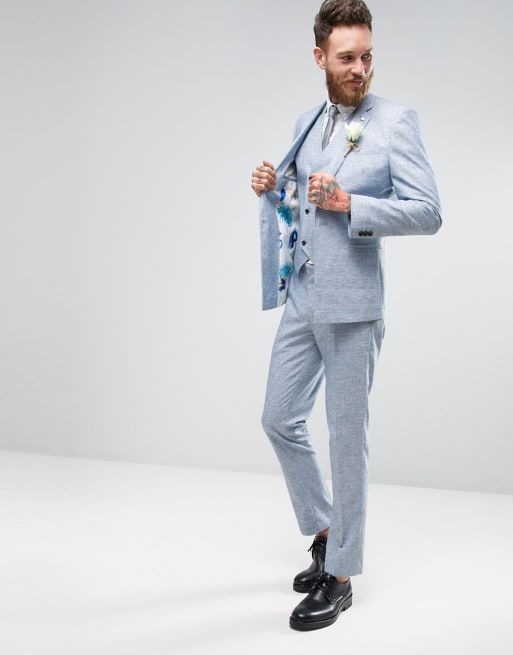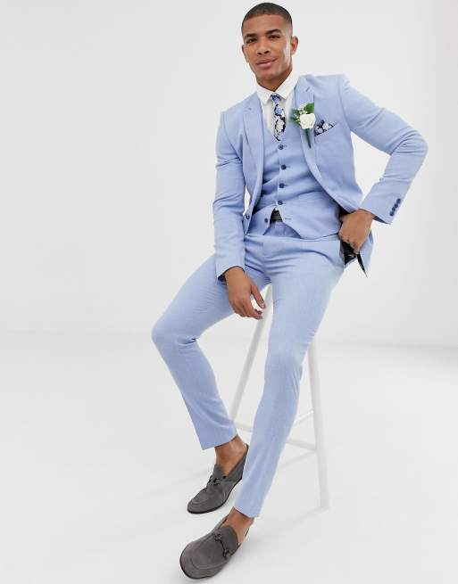 Asos Wedding Skinny Suit In Light Blue Crosshatch Nep Asos