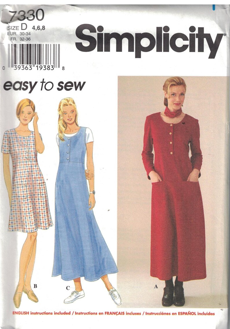 Mccall S Easy Sewing Pattern Easy Fit Jumper Has Scoop Neck Bust Darts Lined Bodice And Topstitching Sewing Dresses Pattern Dress Women Dress Sewing Pattern