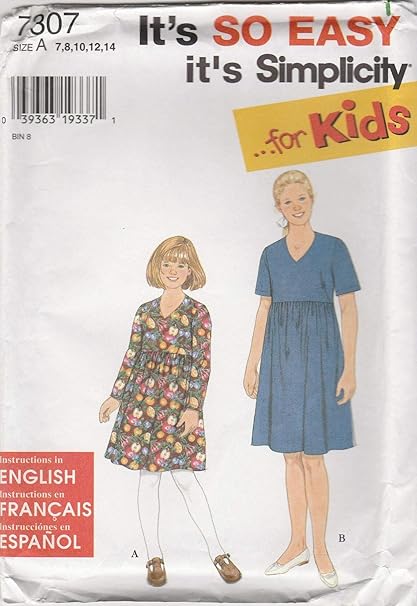 Amazon Com Simplicity 7307 Size A 7 14 Girls Easy Dress Pattern