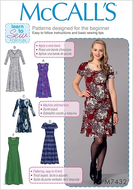 Amazon Com Mccall S Patterns Misses Knit Dresses With V Crew Or