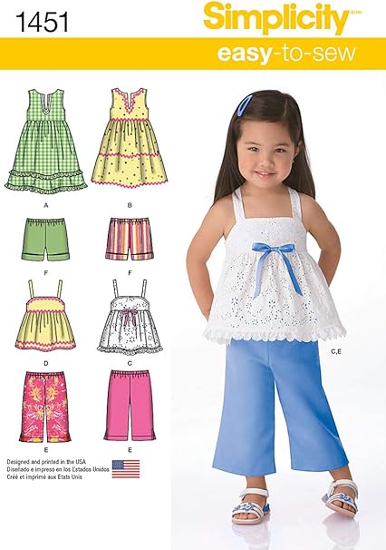 Amazon Com Simplicity 1451 Easy To Sew Toddler Girl S Dress Top Cropped Pants And Shorts Sewing Patterns Sizes 1 2 4 Arts Crafts Sewing