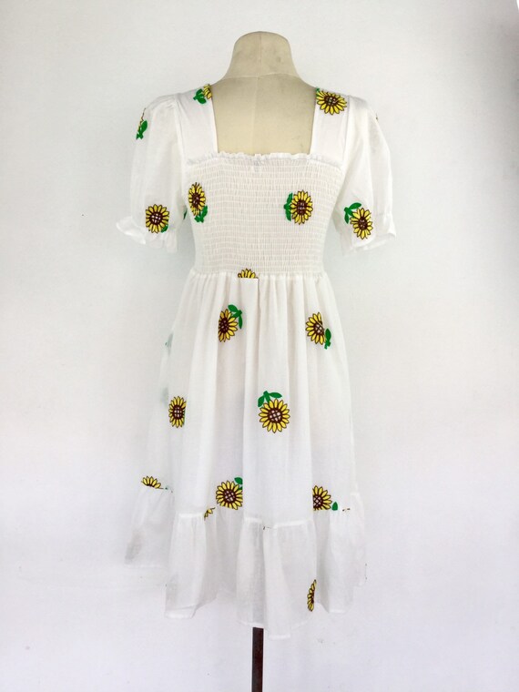 White Embroidered Floral Boho Dress Flower Power Dress Sheer Etsy