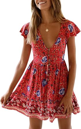 Shop your favorite dress styles. Unleash your bohemian spirit with this v neck floral print a line mini dress. 27 99 sexy spaghetti strap backless splicing lace mini dresses. Oneyim women s dress summer floral long sleeve off shoulder casual mini dresses.