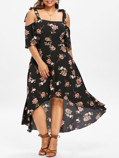 Plus Size Floral Maxi Cold Shoulder Dress Boho Dress Plus Size
