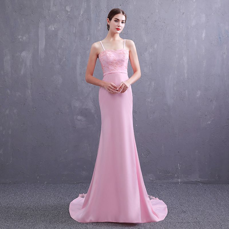 Hot Sale New Pattern 2019 Simple Pink Girl Strapless A Line Prom