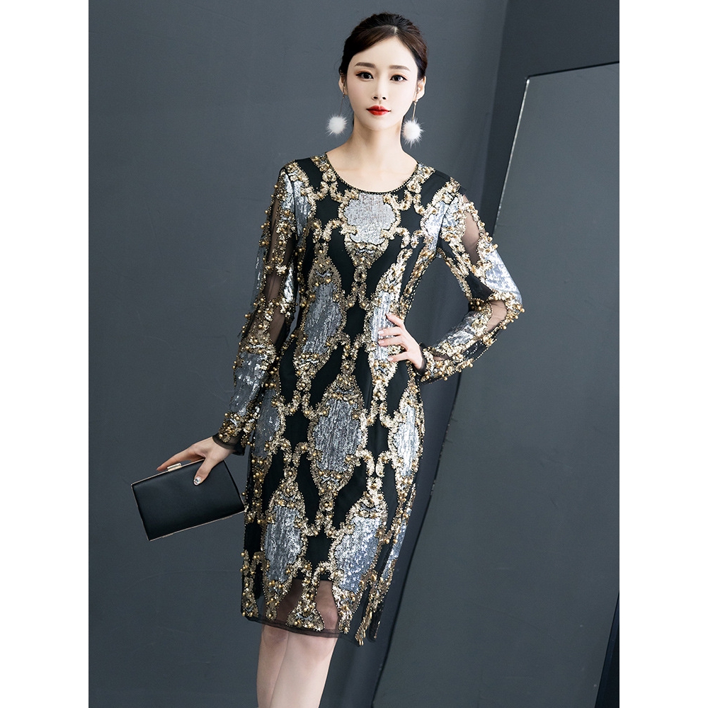 New Fashion Short Sleeves Heavy Baeding Nice Pattern Pleats Sheath