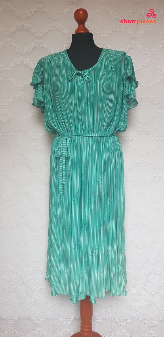 Vintage 70s Summer Dress Short Sleeve Dress Green White Etsy