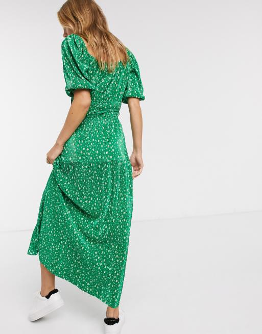 Asos Design Plisse Maxi Dress In Green Floral Ditsy Print Asos