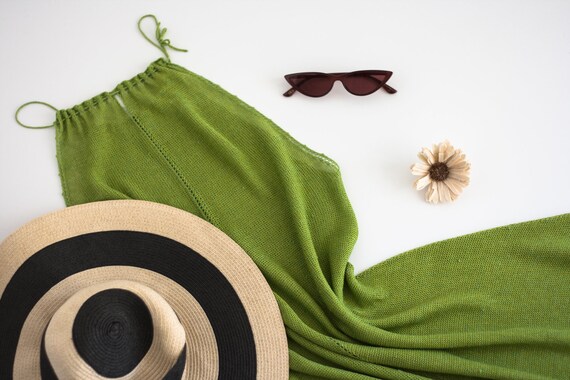 Green Sundress Sleeveles Dress Strappy Dress Summer Knit Etsy