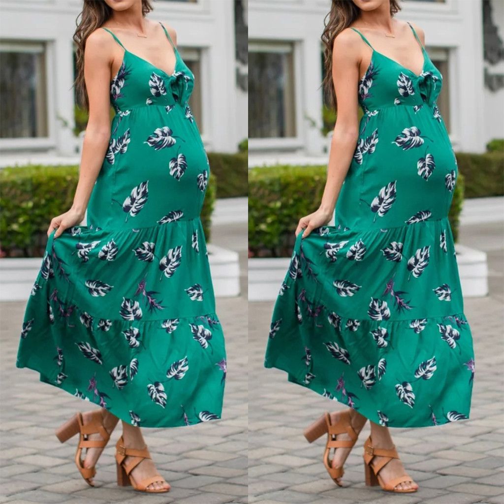 Lonsant Maternity Dress Summer Women Sleeveless Daisy Green Belt