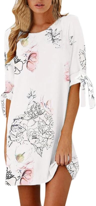Summer Dress For Women Mini Dress Half Sleeve Bow Bandage Floral