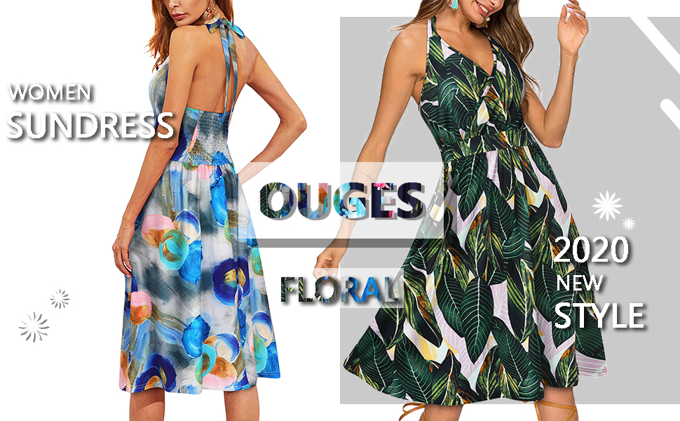 Ouges Women S Halter V Neck Floral Printed Summer Dress Beach