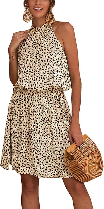 Colrovie Vintage Backless Halter Women Dresses Summer Sexy Ladies