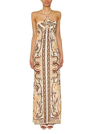 Halterneck Maxi Dress Summer Dress Maxi Dress One Size Uk 8 10 12 Beige Amazon Co Uk Clothing