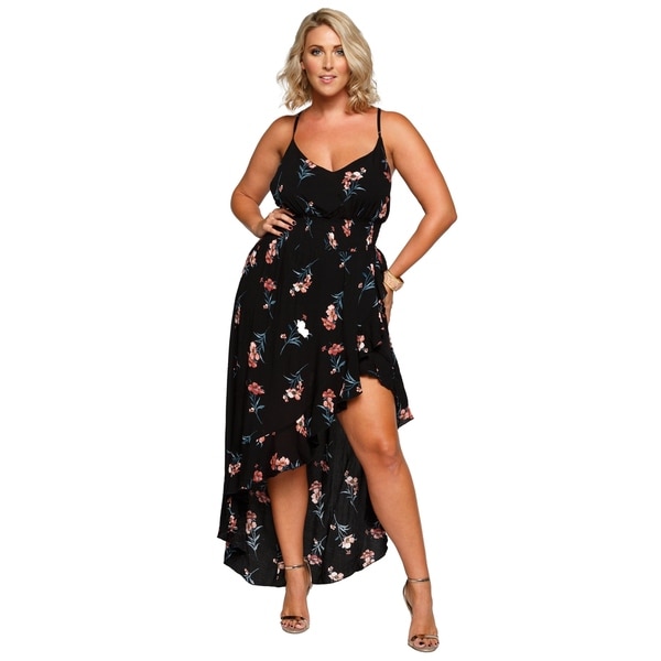 Shop Xehar Womens Plus Size High Low Floral Print Open Back Dress