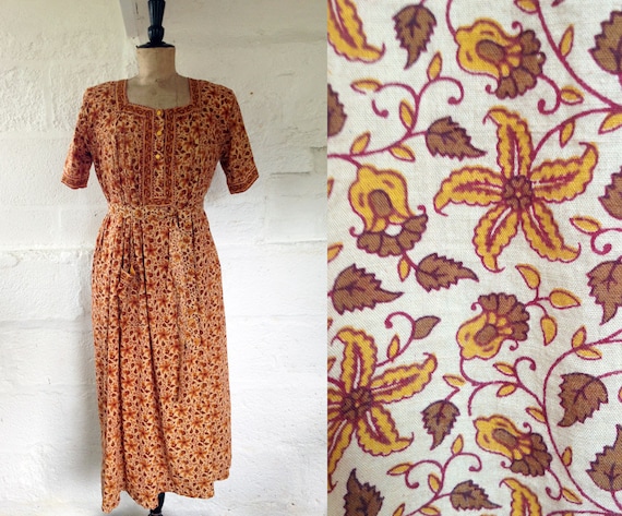 1970s Saffron Handprinted Indian Summer Dress With Starflowers Etsy