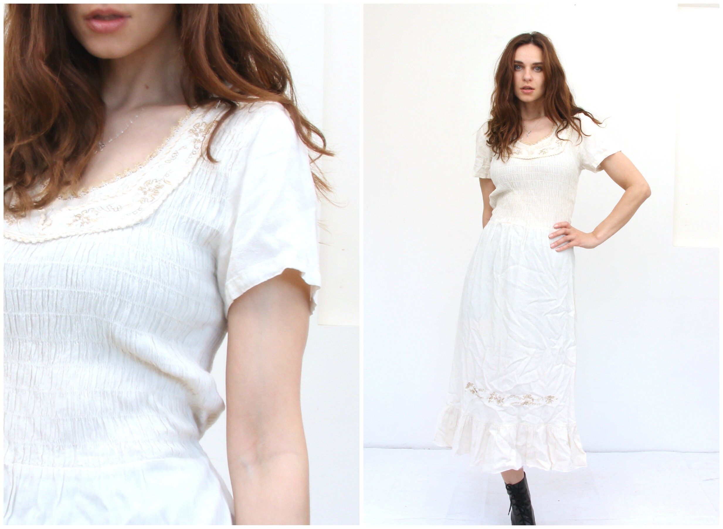 Ivory Linen Dress Cotton Ranch Dress Boho Summer Dress Day Dress