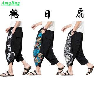 Harajuku Japan 2019 Summer Crane Embroidery Print Beach Pants