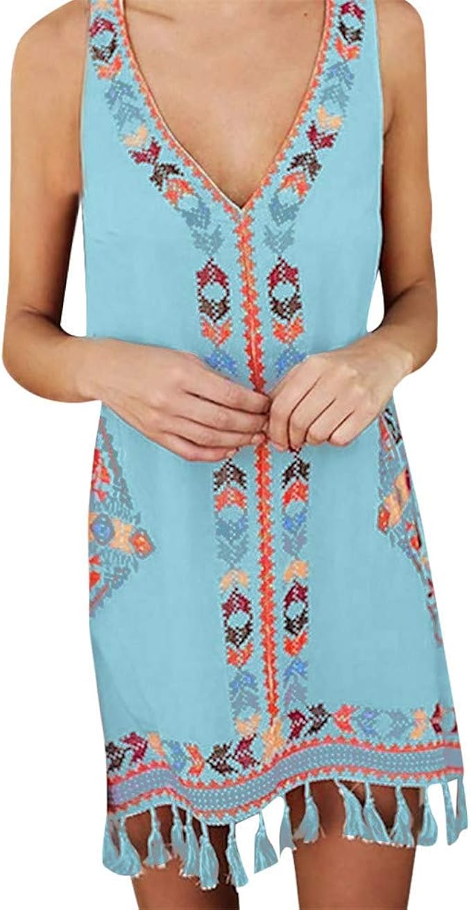 Vickyleb Bohemian Swing Dress Women Summer Boho Tassel Dress