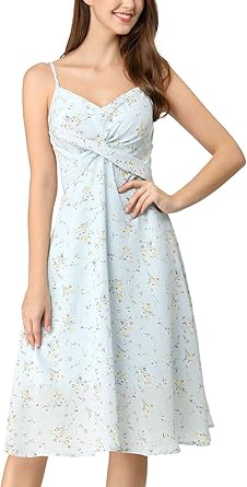 Allegra K Women S Floral Twist Front Knee Length Summer Adjustable