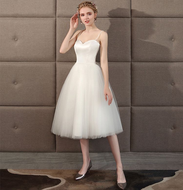 Spaghetti Straps Tulle Short Ball Gown Wedding Dresses Beach 2018