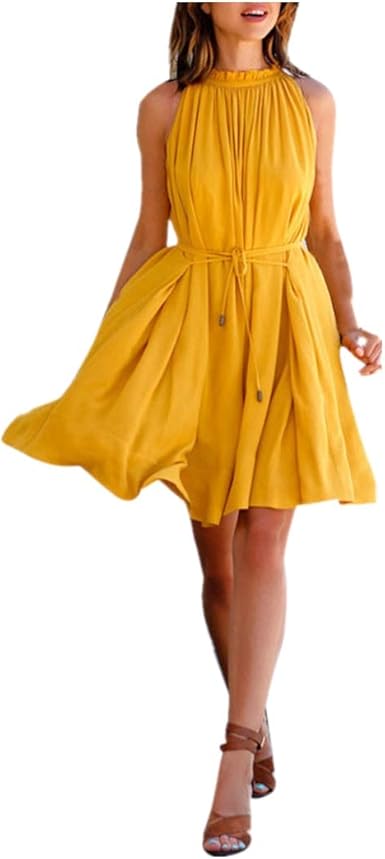 Yellow Summer Dress Floral Print Sleeveless Knee Length Sundresses