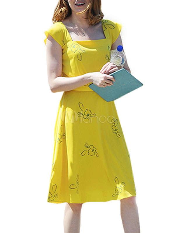 Yellow Summer Dress Square Neck Knee Length Beach Dress Milanoo Com