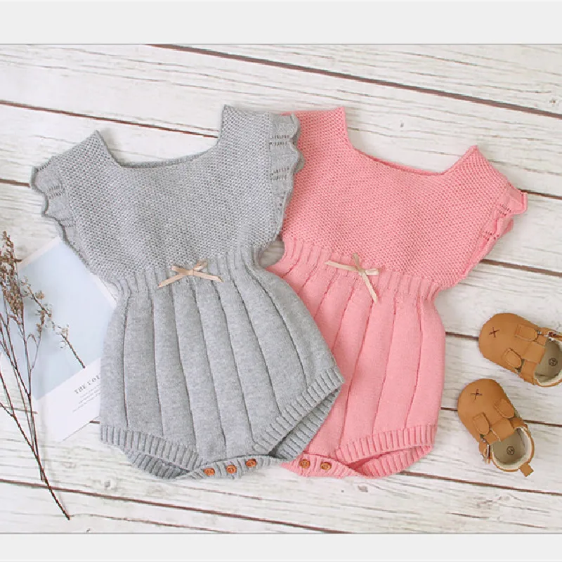Knitted Baby Clothes Winter Summer Baby Jumpsuit Ruffle Sleeve