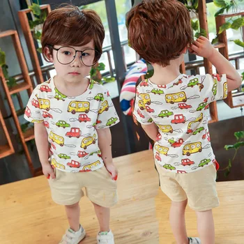 F20222a Korean Style Boy S Summer Clothes Print Shirt And Short