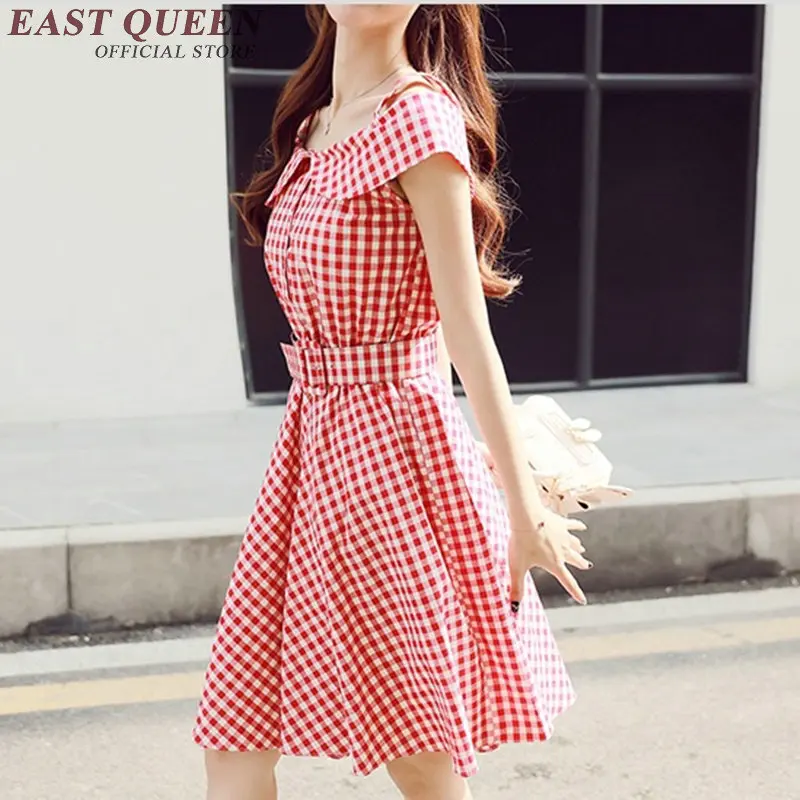 2018 Summer Dress Kawaii Online Korean Dress Red Plaid Bare