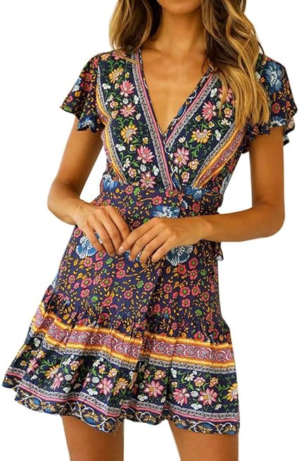 Girl Navy Blue Print Wrap Party Dress Flare Sleeveless Floral Long Women Summer Dresses Beach Sexy V Neck Boho Vestidos Ony189 Knit Dresses For Women Dress Styles For Women From Vanessa918 13 67