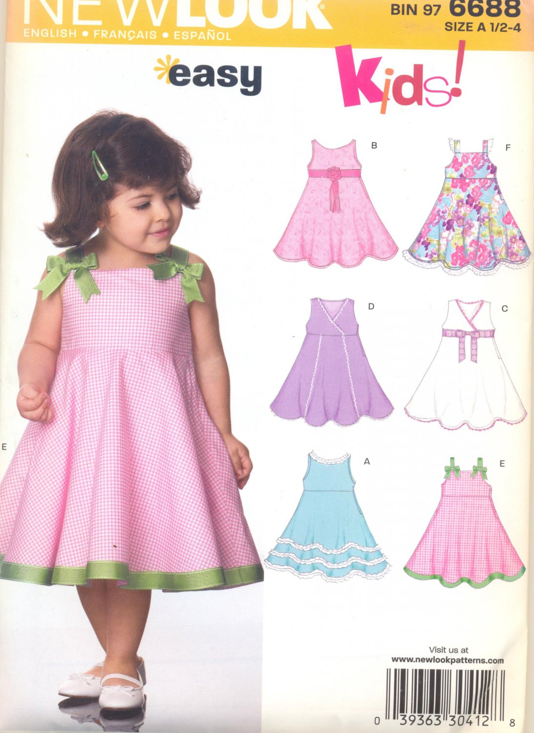 Girls Pattern Toddler 5 Sizes Dress New Look 6688 Summer Clothes