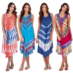 Womens Holiday Cover Up Sleeveless Tie Dye Midi Ladies Summer