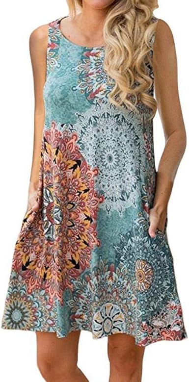 Sunywear Women Ladies Summer Dresses Casual O Neck Sleeveless