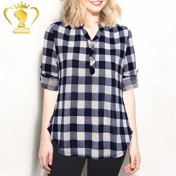 2019 Women Blouse And Tops Femme Summer Plaid Shirts Plus Size