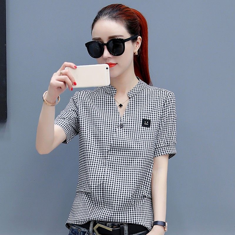 Summer 2020 Plaid Shirt Female Short Sleeve Checkered Shirt Tops