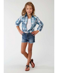 Roper Girls Summer Blues Plaid Long Sleeve Shirt Fort Brands