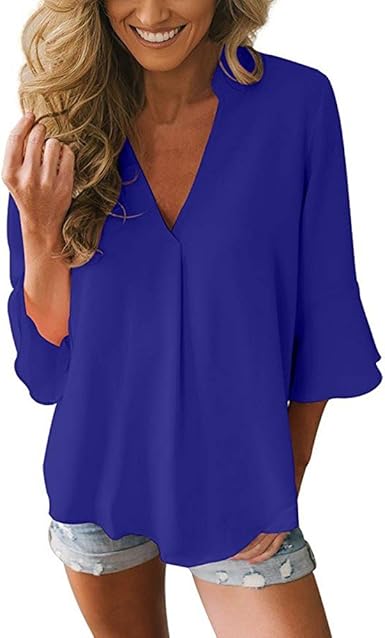 Kyleon Women T Shirts V Neck Peplum Sleeve Chiffon Loose Office