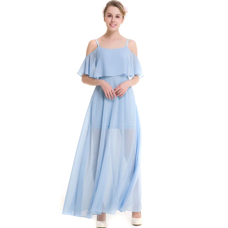 Light blue summer maxi dress. Eligible for free shipping. Us 29 99 486 out of stock. Pleated empire waist flows into an elegant woven maxi skirt. Little girls long sleeve a line dress a pleated light blue fabric from the chest down 63 00 free ship at 25 free ship at 25.