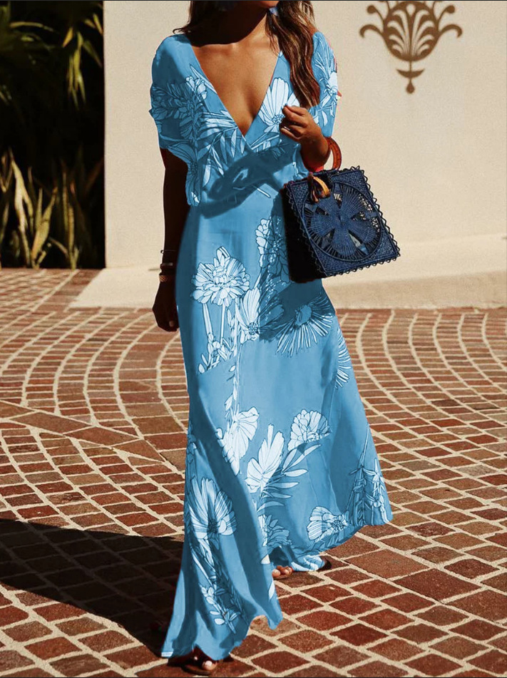 Free shipping by amazon. Vintage floral light blue deep v maxi summer dress alteregovtg.