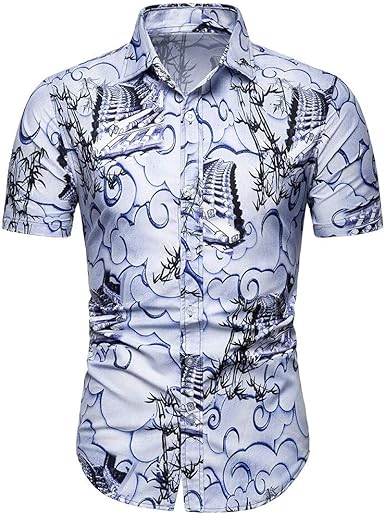 Summer Men Short Sleeve Dress Shirts Button Down Floral Casual