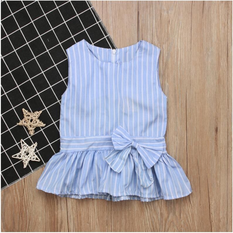 2020 Girl Summer Sleeveless Vertical Striped Butterfly Bow Dress