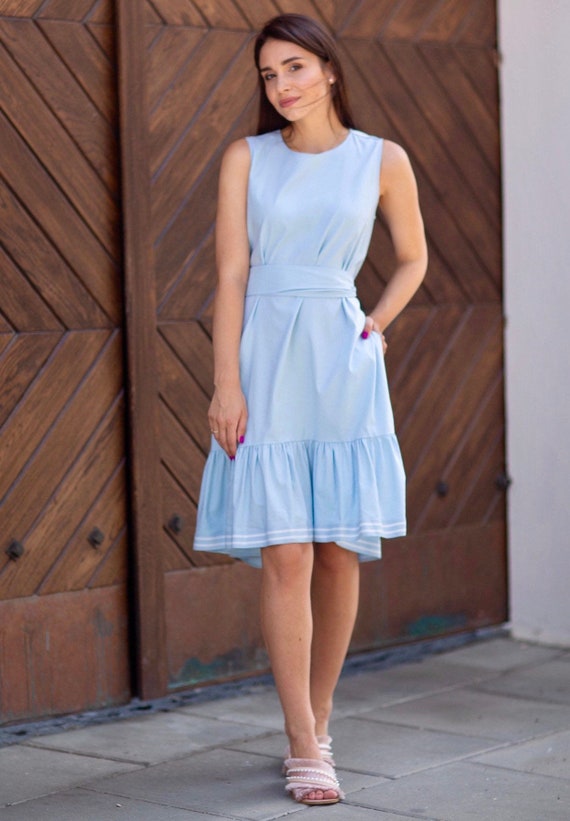 Cotton Dress Summer Dress Light Blue Dresses Blue Dress Etsy