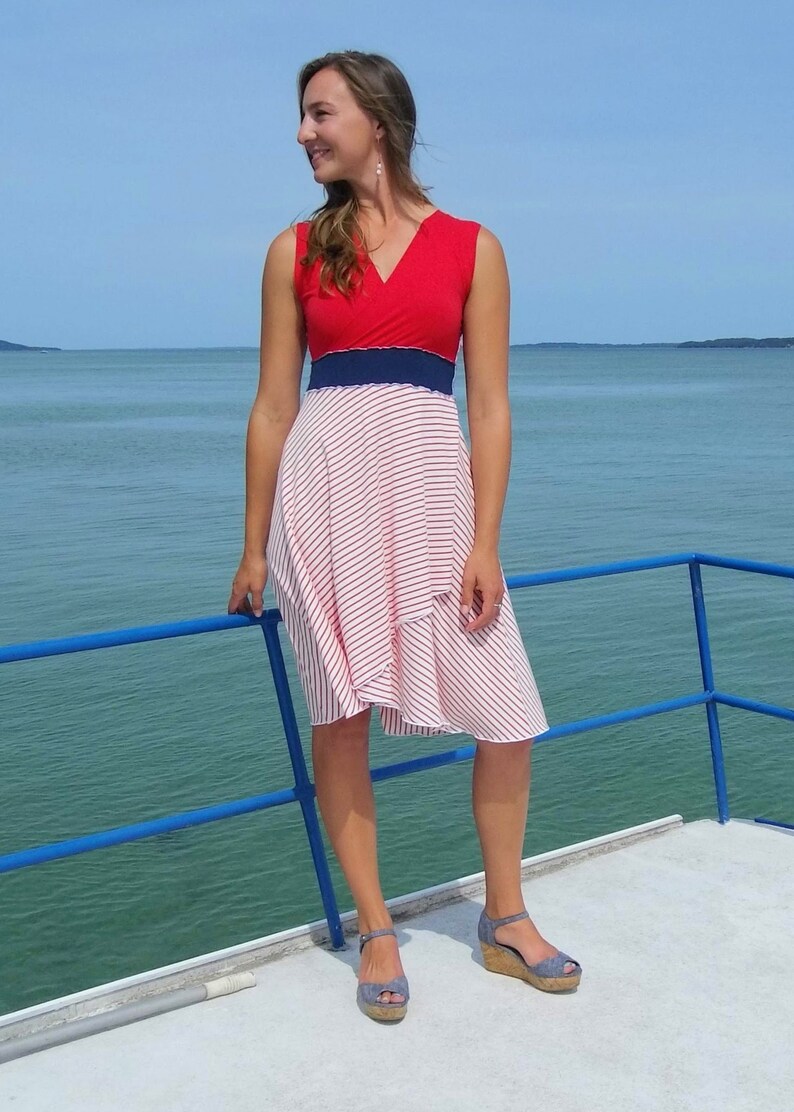 Organic Red White Blue Summer Dress Lightweight Boating Etsy
