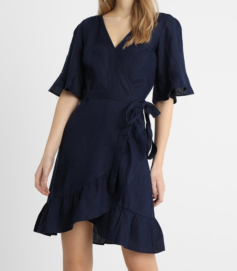 Linen Wrap Dress White Summer Dress Floral Wrap Cotton Red Etsy