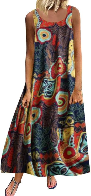 Xingopy Summer Dresses Women Sleeveless Boho Linen Floral Printed