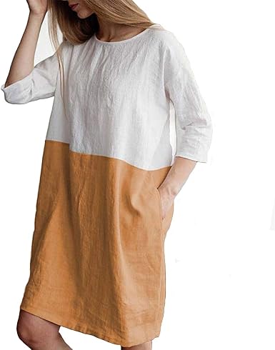 Helisopus Women S Cotton Linen Summer Dress Soft Loose Patchwork