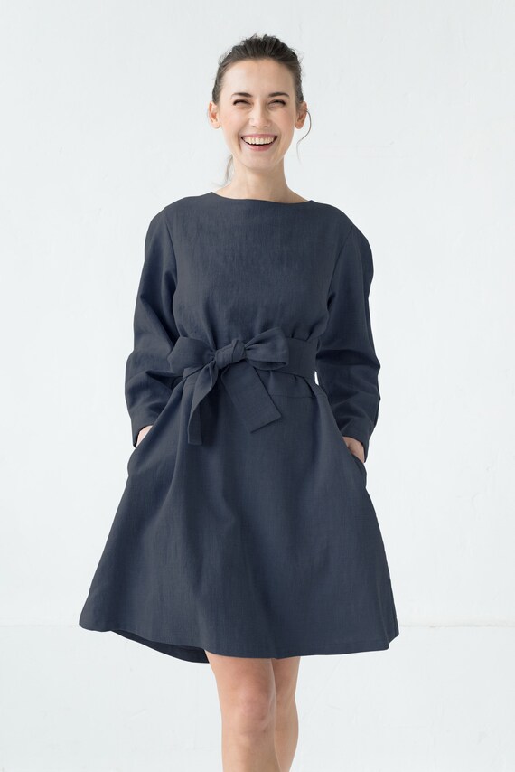 Women Linen Dress Summer Dress Belt Dress Linen Clothing Etsy