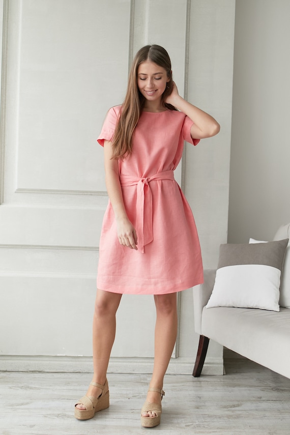 Mini Linen Summer Dress Flax Evening Dress Short Sleeve Etsy