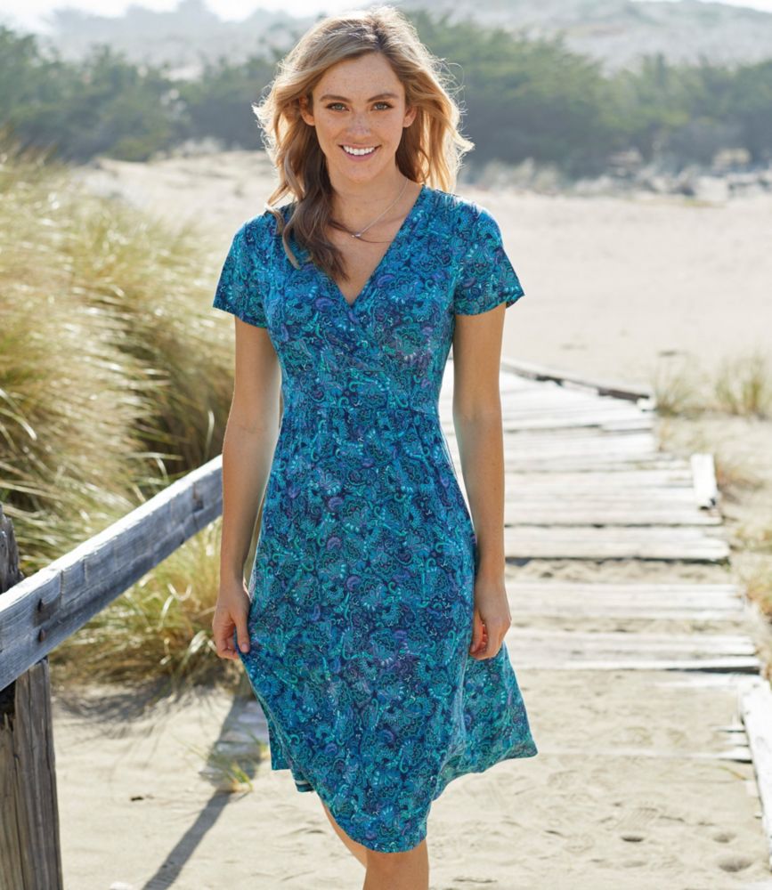 L L Bean Women S Summer Knit Dress Short Sleeve Print Shopstyle